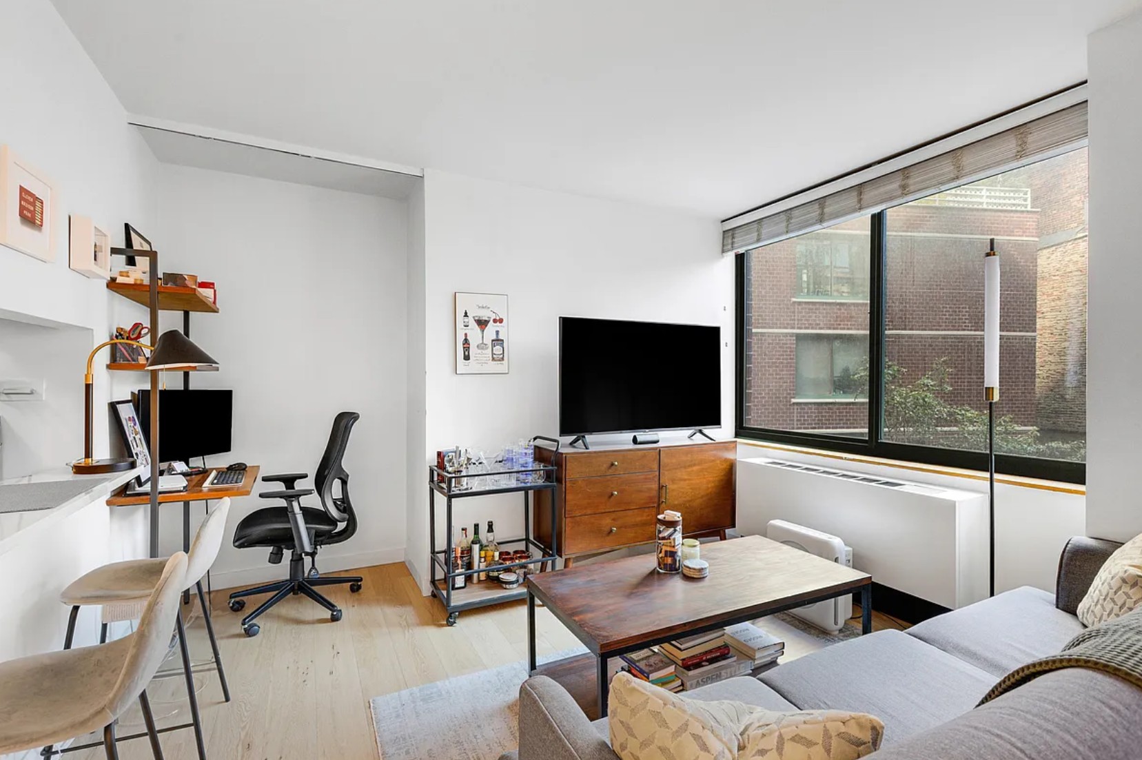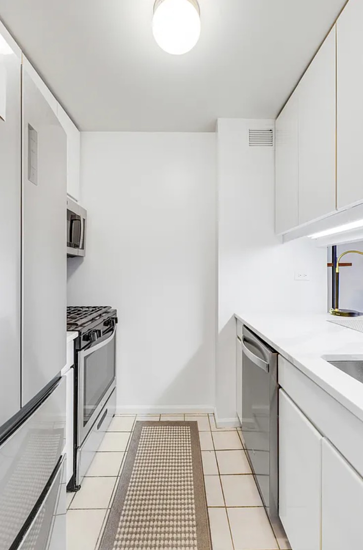 Renovated alcove studio in a 24 hour doorman condominium facing East onto the courtyard. Outfitted with 6 1/2” wide plank floors, abundant closet space, a marble bathroom, two HVAC units, & large windows. The kitchen has a pass through breakfast bar, done countertops, full size stainless steel appliances including a gas stove, large refrigerator, over the range microwave, and a dishwasher.